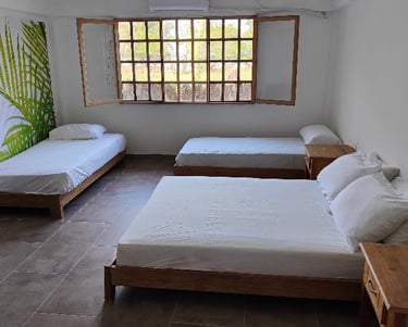 Cada habitación tiene aire acondicionado, persianas oscuras, baño privado con ducha, inodoro, lavabo y toallas limpias.